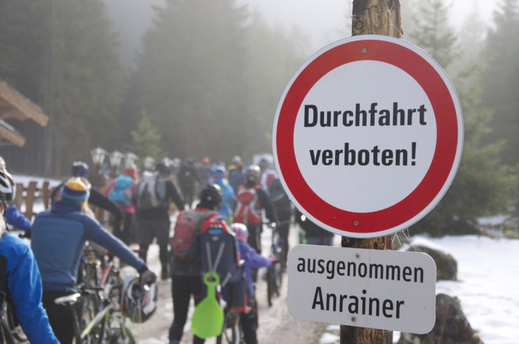 Grundbesitzende verhindern die Freigabe von Forststraßen für Mountainbiker. Das gemeine Volk soll ausgesperrt bleiben.