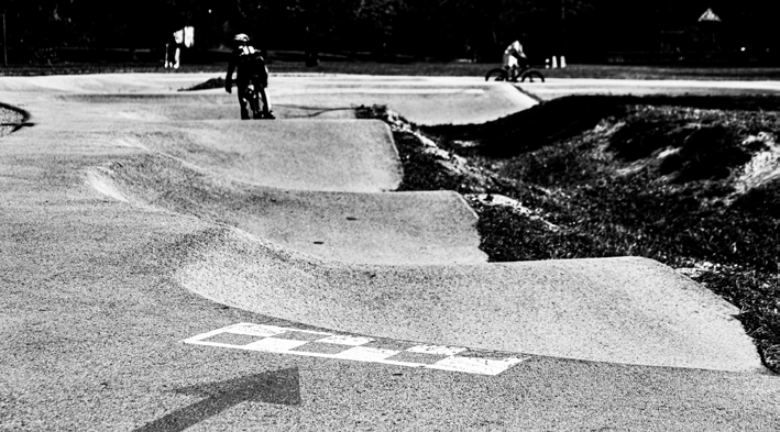 Am immer noch relativ neuen Pumptrack an der Neuen Donau beispielsweise treffen sich alle möglichen Leute, auf sehr unterschiedlichen Fahrrädern. Ein Pumptrack an sich ist ein geschlossener Kurs, meist aus Asphalt, auf dem man – im Idealfall ohne zu kurbeln – Runden drehen kann: eben durch Pumpbewegungen mit den Armen und Beinen.